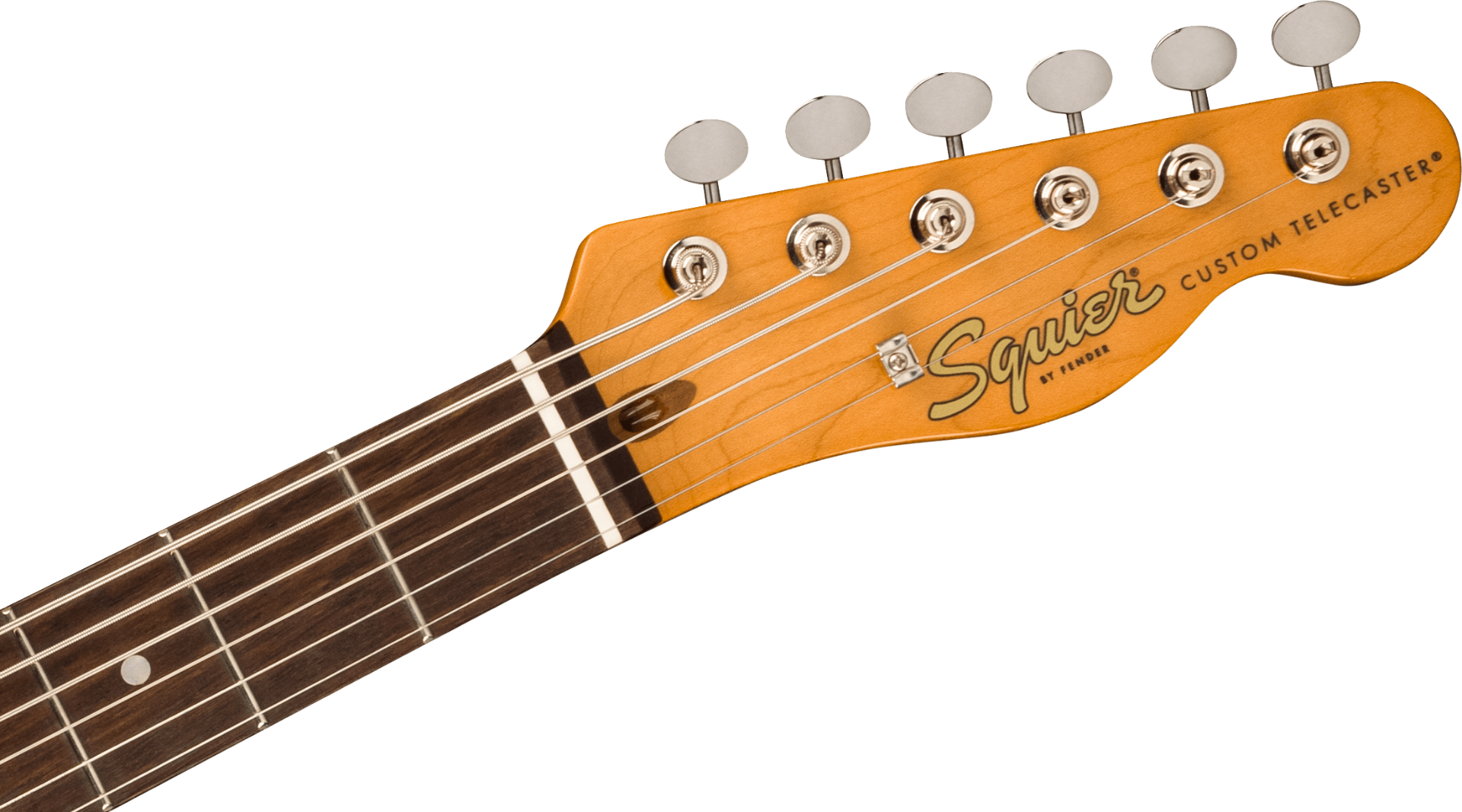 A nod to the double-bound Tele® models of the 1960s, the Classic Vibe Baritone Custom Telecaster has the extended 27" scale length needed for baritone tuning. With incredible tone courtesy of the Fender-Designed alnico single-coil pickups, this Tele features a "C"-shaped neck profile with an easy-playing 9.5"-radius fingerboard and narrow-tall frets, as well as a vintage-style Telecaster bridge with barrel saddles and string-through-body design. This throwback Squier model also features 1960s-inspired headstock markings, rich-looking nickel-plated hardware and a slick vintage-tint gloss neck finish for an old-school vibe.