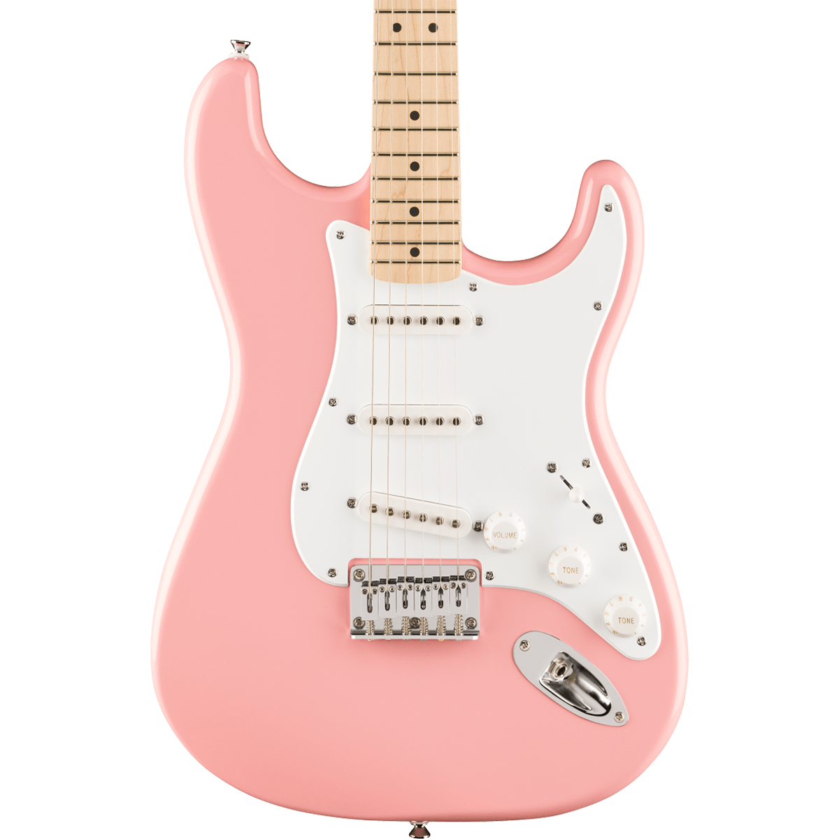 Squier FSR Squier Sonic Stratocaster HT, Maple Fingerboard, White Pickguard in Shell Pink