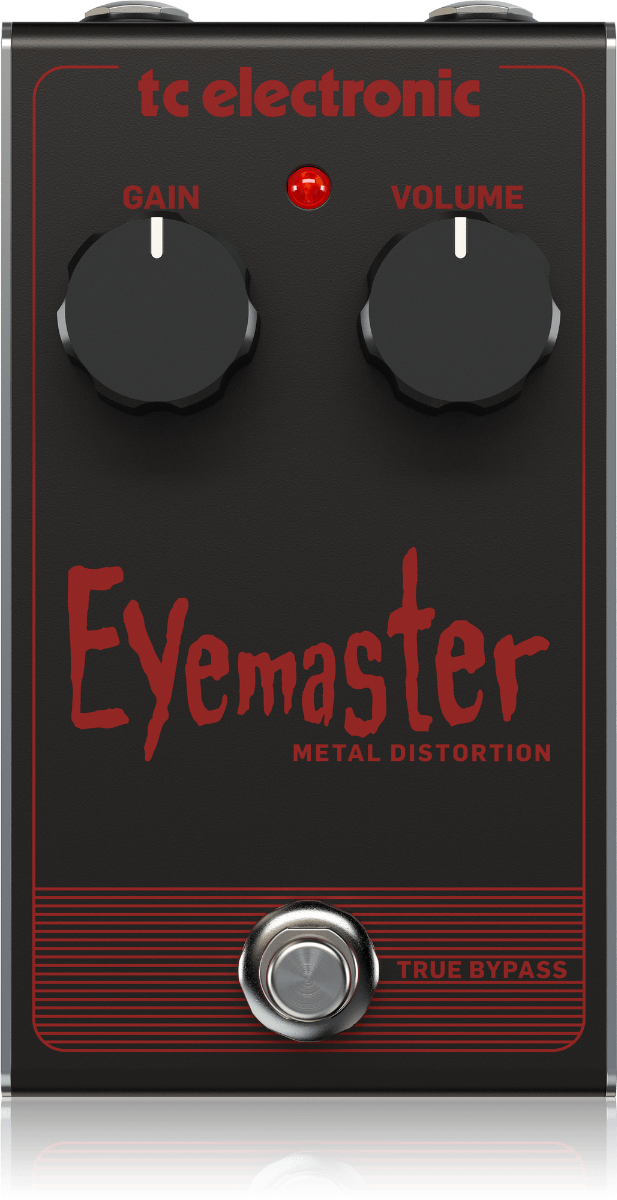 EYEMASTER METAL DISTORTION brings back the original metal credo of "loud and brutal" with its "simpler-than thou" 2-knob operation. Just set the volume (all the way up, right?) and adjust the gain (anything less than all-the-gain is sacrilege) and start riffing. EYEMASTER was specifically designed to channel the Swedish death metal tone, endearingly nicknamed the "Swedish buzzsaw". As that term implies, EYEMASTER is not a subtle overdrive.