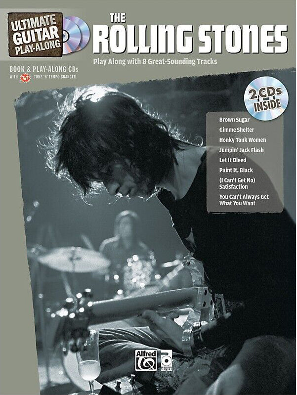 Eight classic Stones songs with full TAB. The CD contains an instrumental version of each song and an instrumental play-along version without guitar. Plus, the CD contains embedded software that allows you to access the full-performance version, or to selectively mute Guitar 1, Guitar 2, or both. Plus you can easily loop sections, slow tracks without changing pitch and even change key. Matching bass and drum editions available! Titles: Brown Sugar * Gimme Shelter * Honky Tonk Women * Jumpin' Jack Flash * Let it Bleed * Paint it, Black * (I Can't Get No) Satisfaction * You Can't Always Get What You Want.