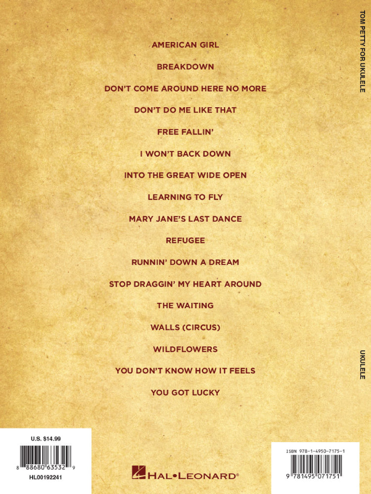 Get ready to strum, sing and pick along with 17 Tom Petty tunes! Includes: American Girl • Breakdown • Don't Come Around Here No More • Don't Do Me Like That • Free Fallin' • I Won't Back Down • Into the Great Wide Open • Learning to Fly • Mary Jane's Last Dance • Runnin' down a Dream • Stop Draggin' My Heart ARound • Wildflowers • You Don't Know How It Feels • and more.
