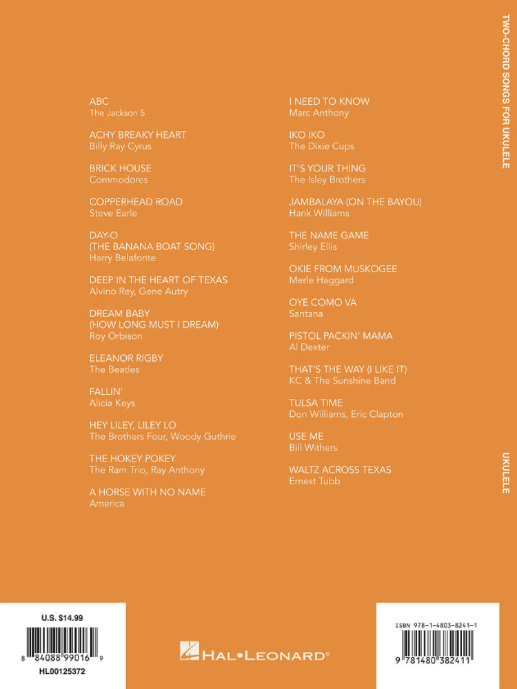 A great collection for beginners: if you can learn two chords, you can play two dozen favorite hits! Includes: ABC • Brick House • Day-O (The Banana Boat Song) • Eleanor Rigby • A Horse with No Name • Iko Iko • Jambalaya (On the Bayou) • Okie from Muskogee • Oye Como Va • Tulsa Time • and more!