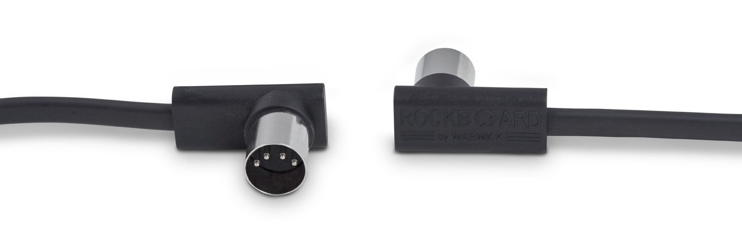 The RockBoard® Flat MIDI Cables were developed on the basis of the successful design of the patented RockBoard® Flat Patch Cables. The flat, rectangular conductor cable effectively reduces twisting and prevents damage to the cable core. The 5-pin pinout makes the realization of almost any MIDI application possible.