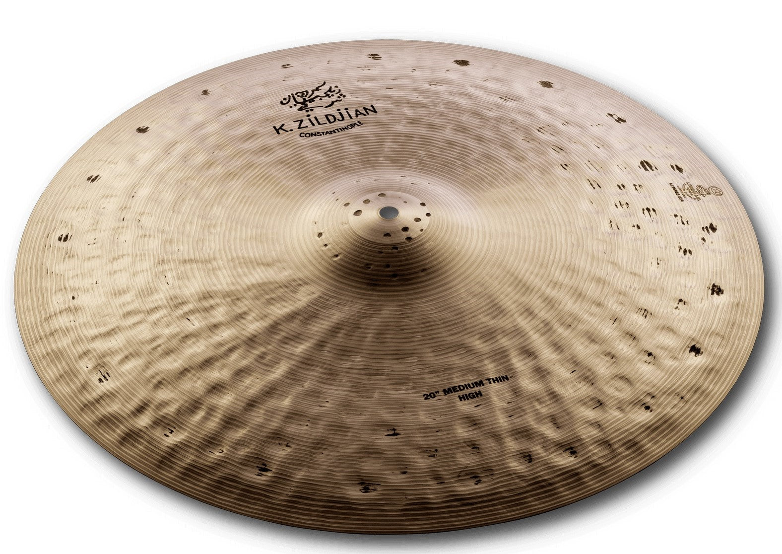The K Constantinople Medium Thin Ride High features plenty of give and complex texture, with great 'crashability' at a medium thin weight. The combination of top articulation and bottom spread provides excellent stick articulation. It features a slightly higher profile than the Medium Thin Low, resulting in a little more focused stick sound and less wash, at a higher fundamental pitch.
